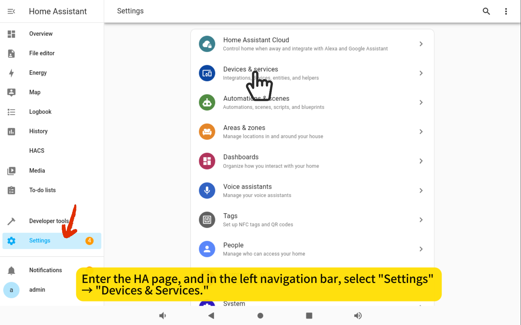 Once the ESP32 Bluetooth proxy is ready, please connect it to the same local network as the ISG. Next, open the ISG's Home Assistant (HA) page. Click on Settings - Devices & services.