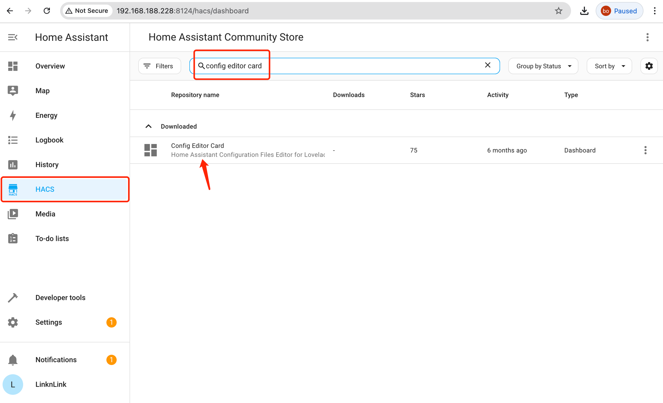 2) Search " Config Editor Card" in HACS, and click "download", it will also show in the HACS list