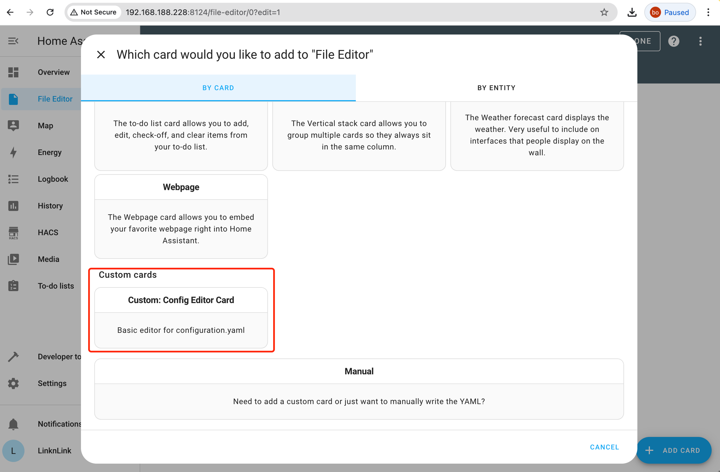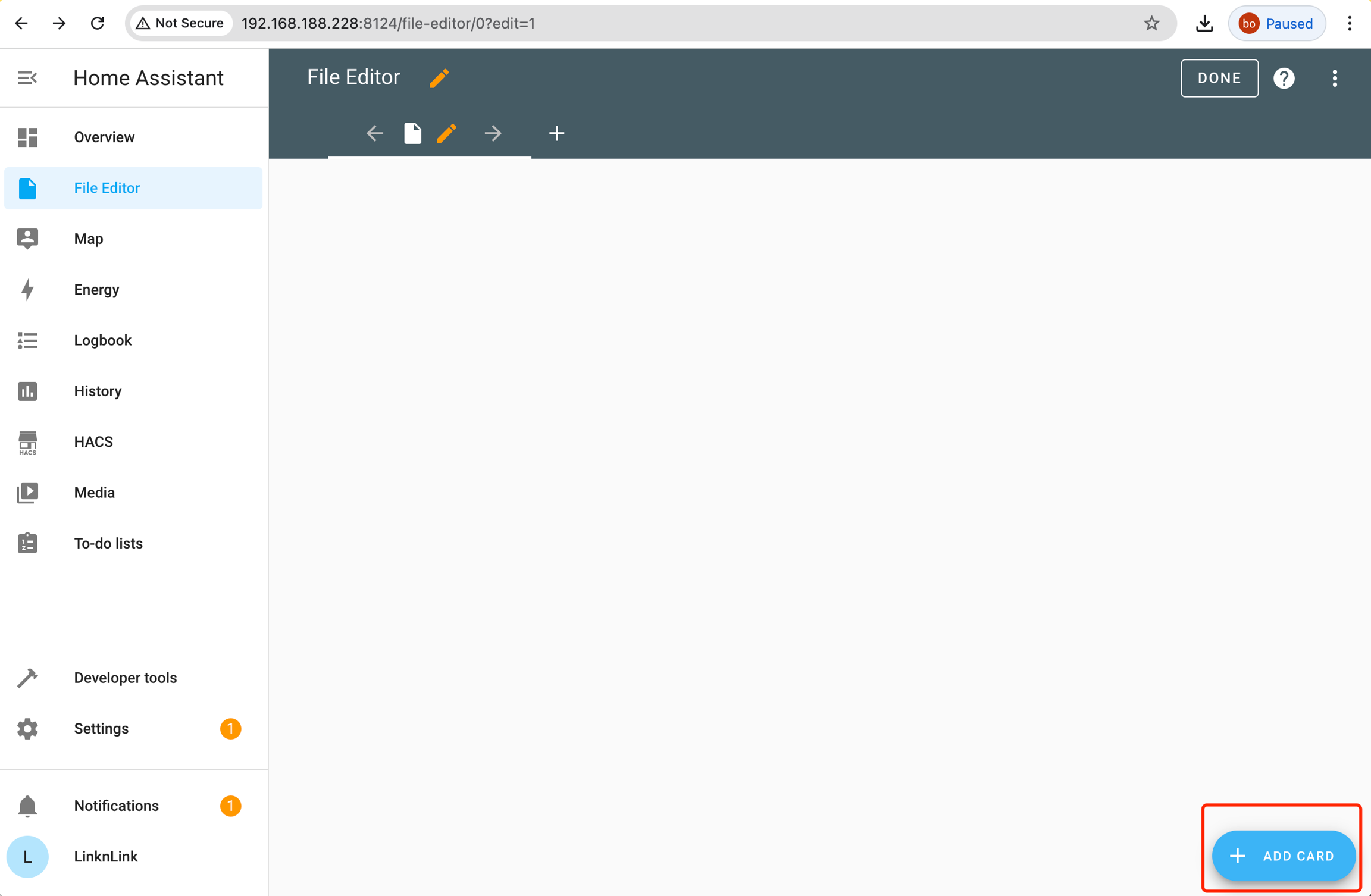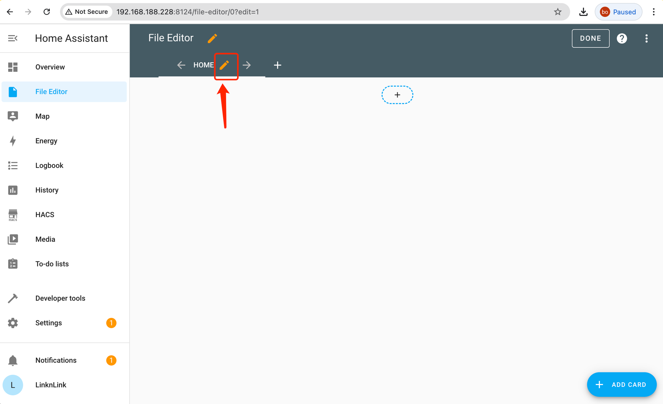 If the File Editor of the built-in Home Assistant on your iSG doesn't appear in the sidebar, here's how to add it.