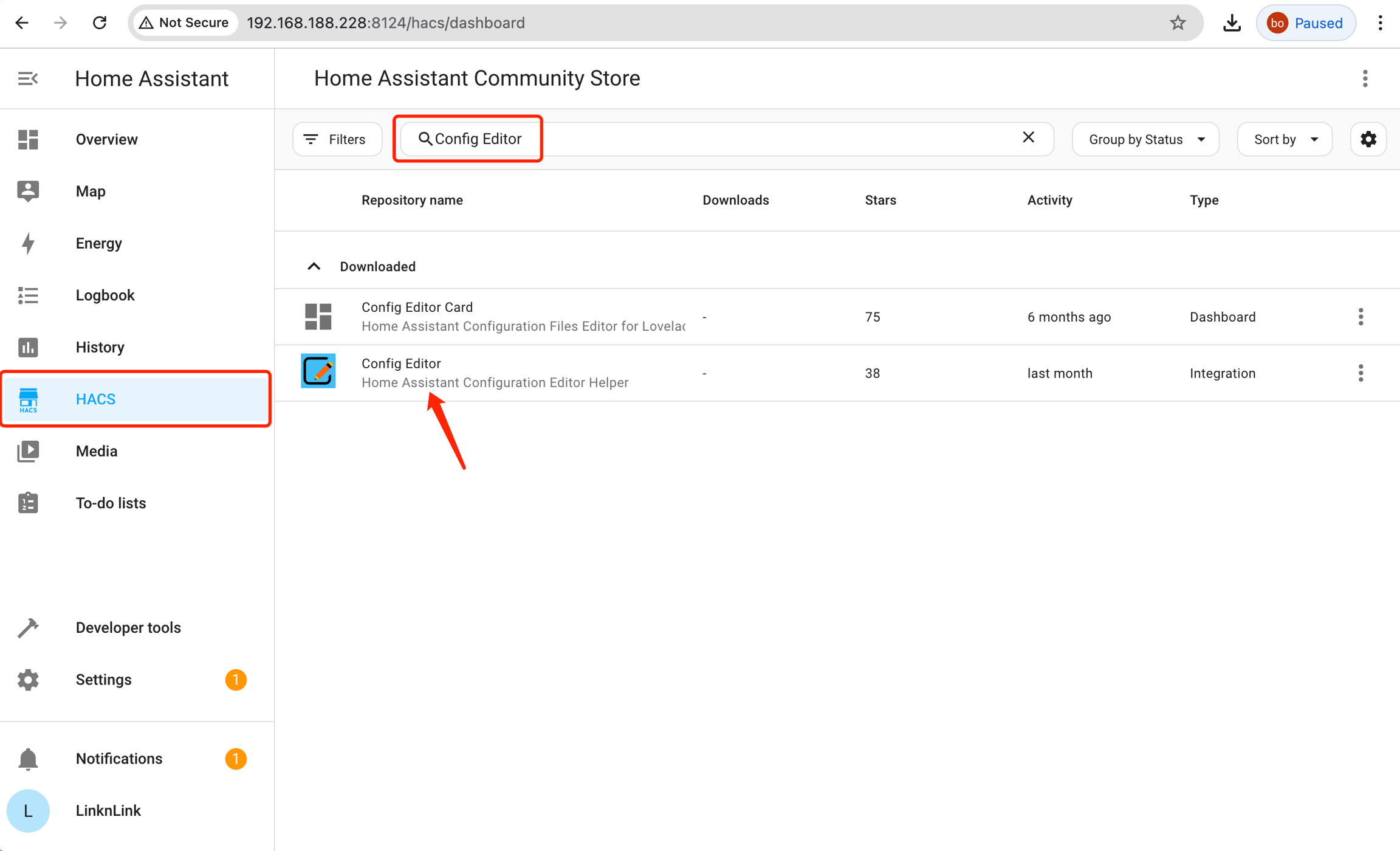 1)Go to iSG built in Home Assistant, Click HACS in side-bar, and search "Config editor", click "download", and it will show in the HACS list
