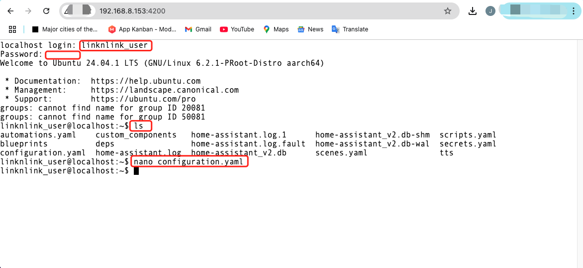 Input command: nano configureation.yaml