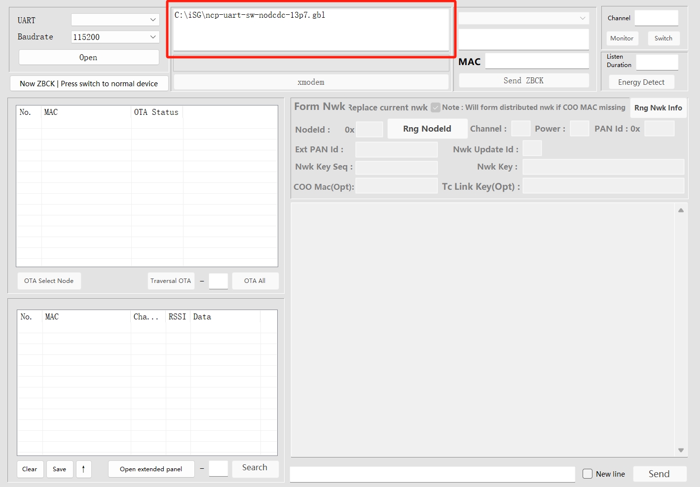 Prepare File: Drag and drop the ncp-uart-sw-nodcdc-13p7.gbl file to the specified location in the application interface.