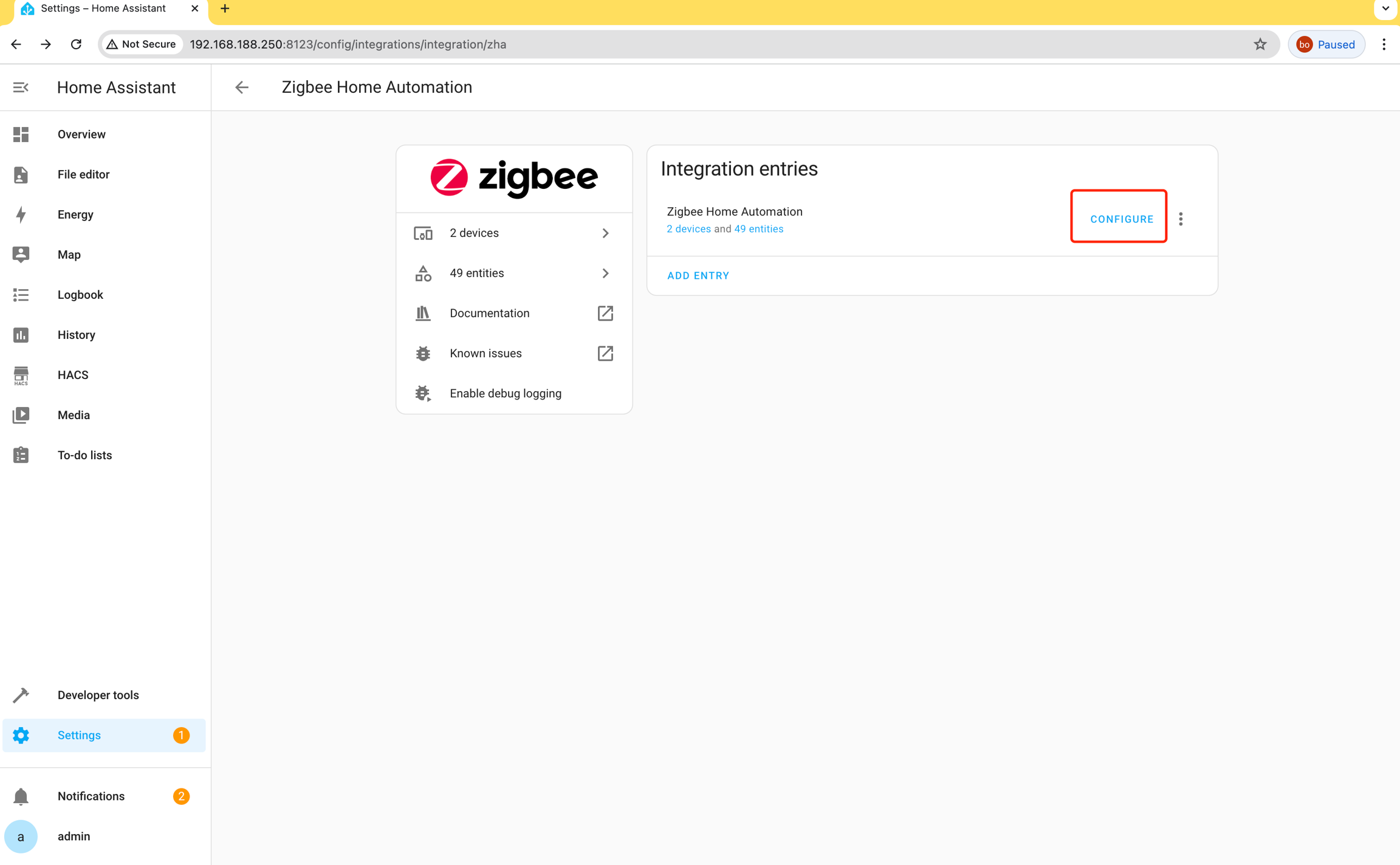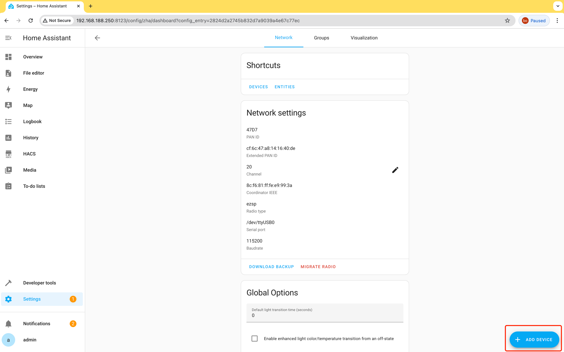 Using the Zigbee Dongle in Home Assistant: