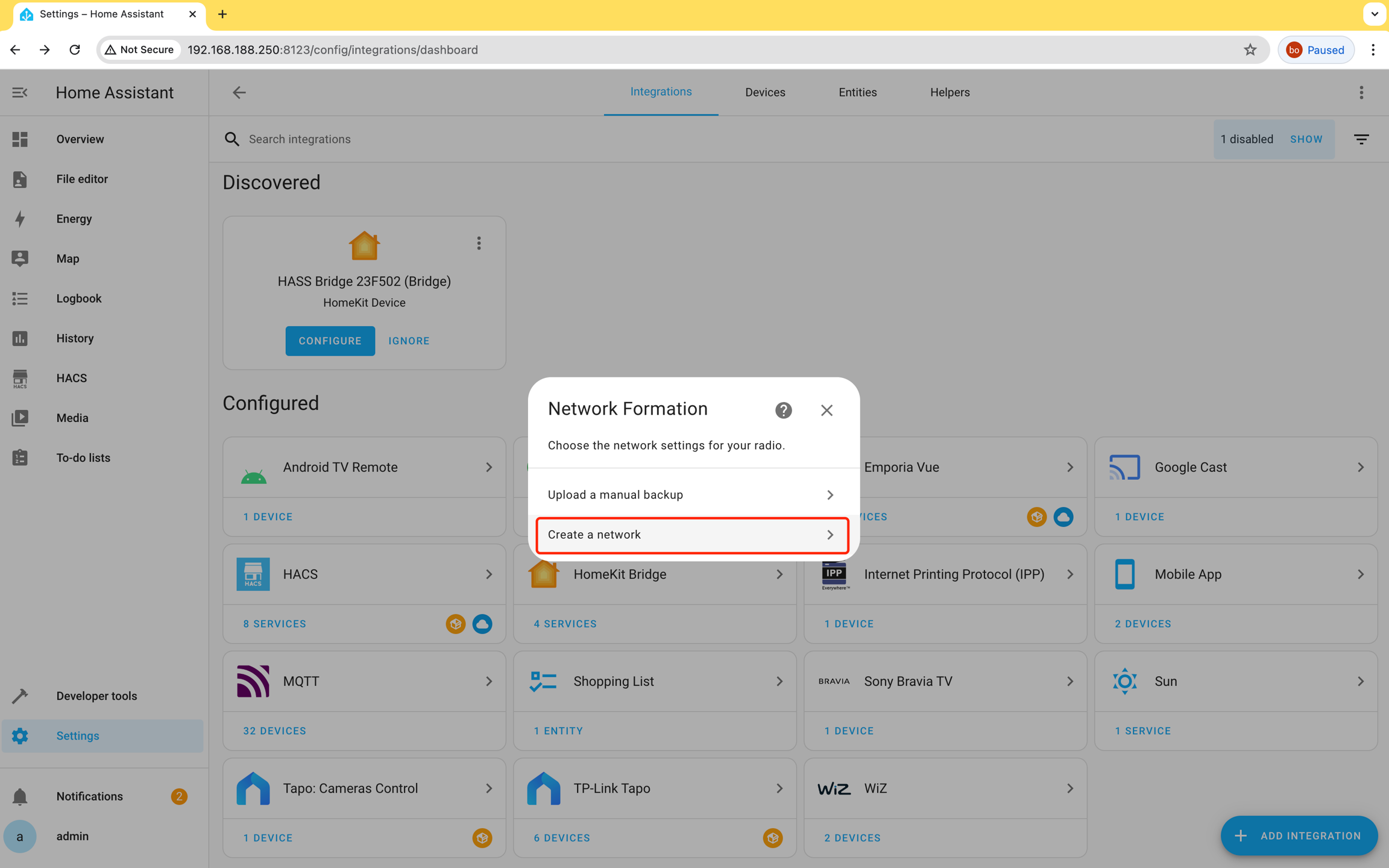 Create Network and Add Devices: In ZHA settings, choose “Create a network,” select a room, and click “finish”. Then, find the Zigbee integration in Devices and Services, click “Configure” -> “Add Device,” and reset your Zigbee device to allow HA to automatically search and add it.