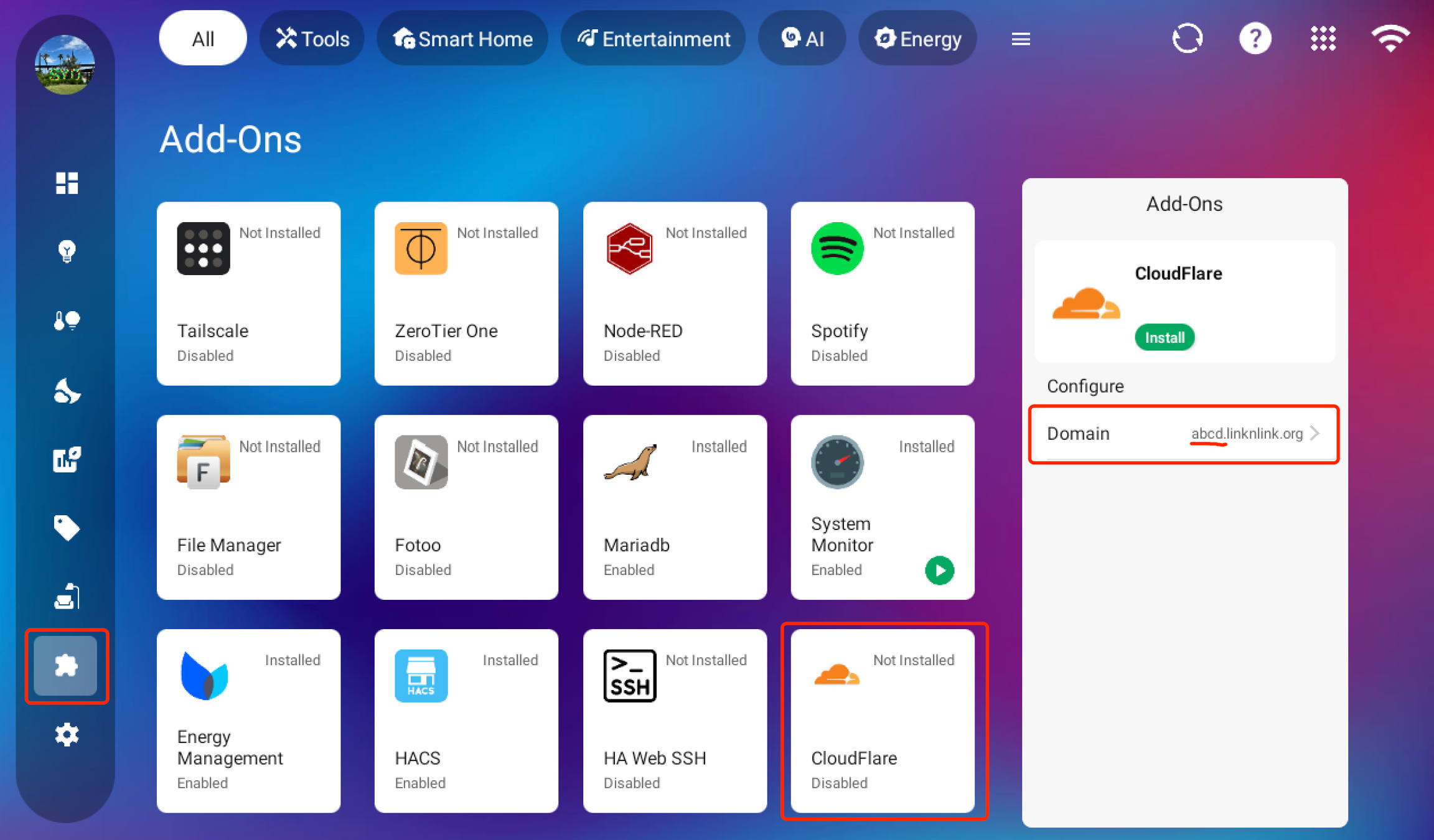 In iSG Add-on, select CloudFlare and input domain you will use for remote access iSG HA.